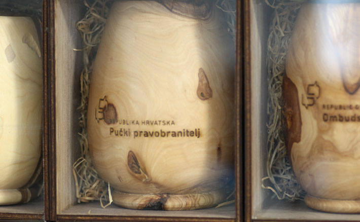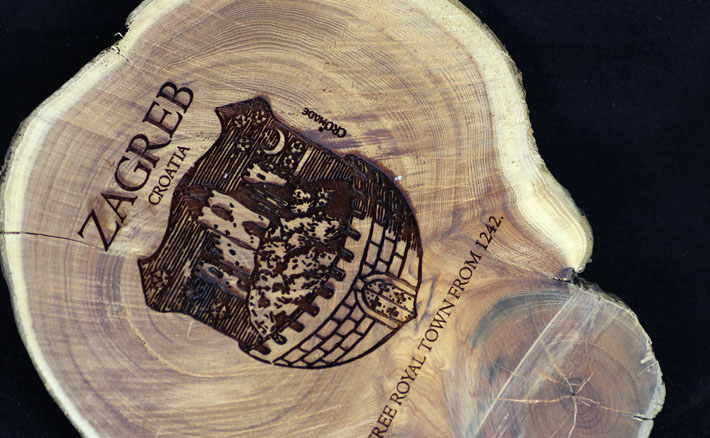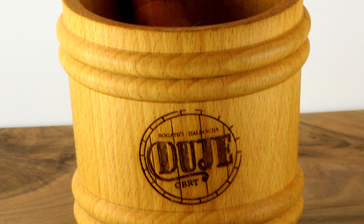 Baza naše proizvodnje je graviranje sa laserskim i CNC strojevima. Iz proizvodnog programa po materijalima izdvajamo drvo, od kojeg izrađujemo plakete, rokovnike, magnete, privjeske, vizit karte, kutije za vino, različite veličine kutijica za pohranu, tradicionalne drvene proizvode, unikate od maslinovog drva te razne suvenire prema Vašem dizajnu.