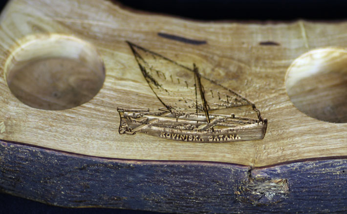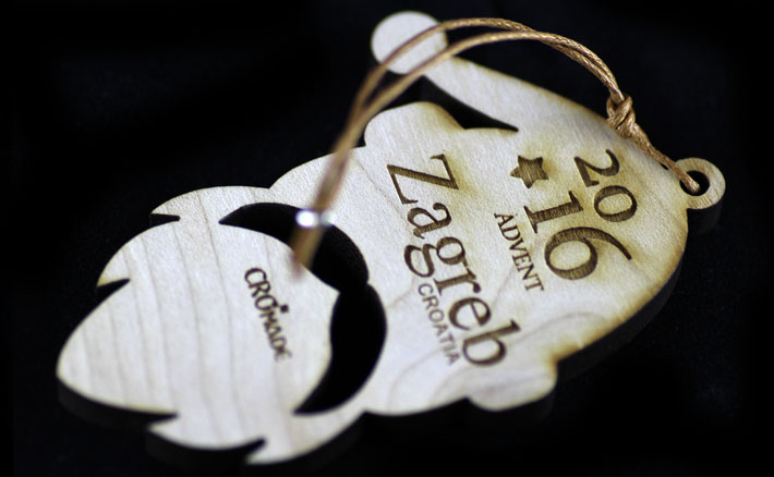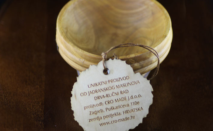 Drveni ukras od maslinovog drva s prorezanim i ugraviranim logotipom i personaliziranim tekstom po želji