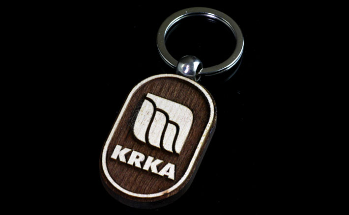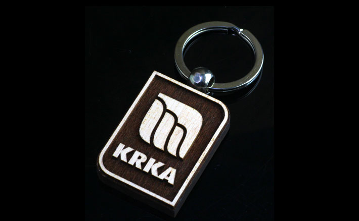 Drveni privjesak od maslinovog drva s ugraviranim logotipom i personaliziranim tekstom na kopči
