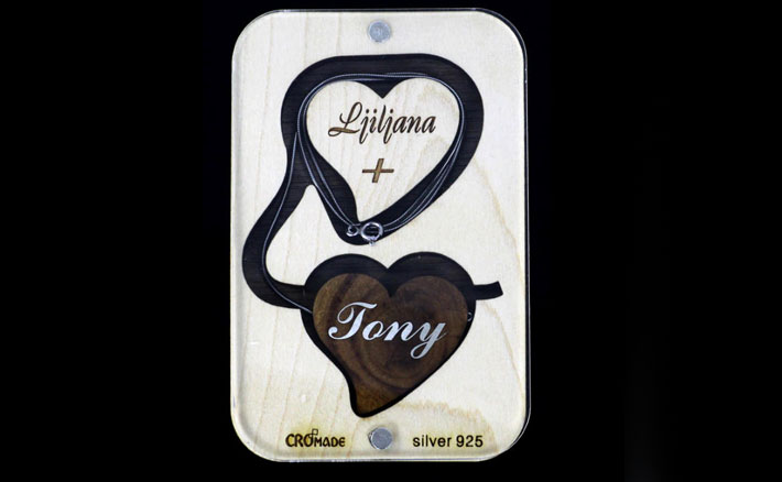 Kutija je izrađena od drva koja s ogrlicom čini jedinstvenu cjelinu. Natpisi na ogrlici i kutiju mogu biti jednaki ili povezani. Cilj je voljenoj osobi sa svakim segmentom dati posebnu pažnju.